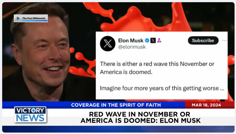 Victory News: 11 a.m. CT | March 18, 2024 – Elon Musk Says America Needs a Red Wave in November