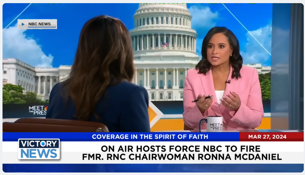 Victory News: 11 a.m. CT | March 27, 2024 – On-Air Hosts Force NBC to Fire Ronna McDaniel