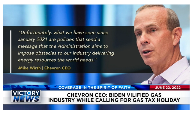 Victory News: 11a.m. CT | June 22, 2022 – Chevron CEO: Biden Vilified Gas Industry, U.S. Senators Reach Agreement On Gun Control Bill