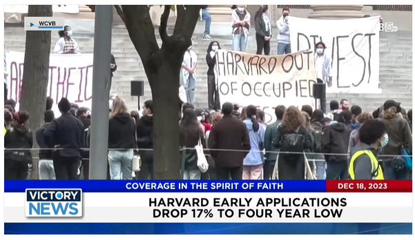 Victory News: 4 p.m. CT | December 18, 2023 – Harvard Early Applications Drop; U.S. Warships Shoot Down 15 Drones in Red Sea