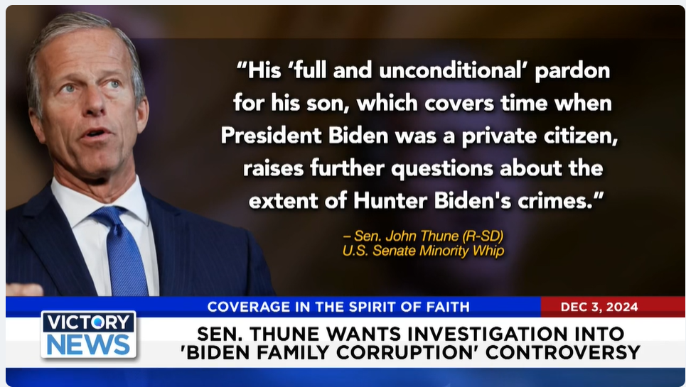 Victory News 4 p.m. CT | December 3, 2024 – Sen. Thune Wants Investigation Into “Biden Family Corruption” Controversy