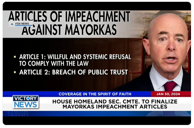 Victory News: 4 p.m. CT | January 30, 2024 – House Homeland Sec. Cmte. to Finalize Mayorkas Impeachment Articles; Nat’l. Gathering for Prayer and Repentance Set for Wed. Jan. 31st