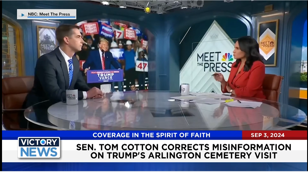 Victory News 4 p.m. CT | September 3, 2024 – Sen. Tom Cotton Corrects Misinformation on Trump’s Arlington Cemetery Visit